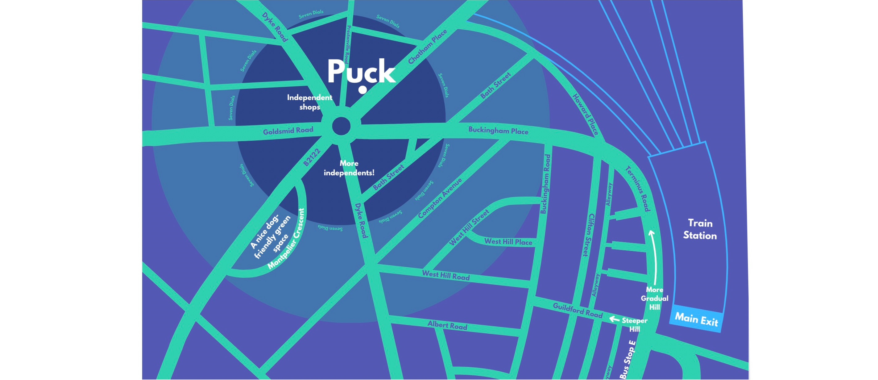 We're in the heart of Seven Dials, a 10 minute stroll up the hill from Brighton station or a few minutes on the bus, usually from Stop E.